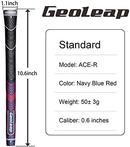Geoleap ACE-R Golf Grips Set of 13- Back Rib Improved Control,Multi Compound Rubber and Cord Hybrid Golf Club Grips, Standard/Mdisize, 7 Colors Optional.