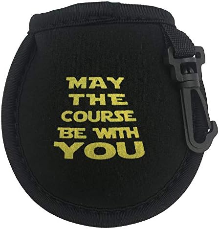 The May The Course Be With You Golf Towel is 15″ x 24″, with a carabiner clip. It is a microfiber waffle pattern golf towel. But wait, there is more … it comes with a poker chip from out of this galaxy! The May The Course Be With You Poker Chip is a 1.5″D, quality, double sided printed chip with a matte finish. This pocket-sized neoprene-like cleaning pouch will keep things tidy from tee to green. The clip conveniently attaches to golf bag, golf cart or belt loop.