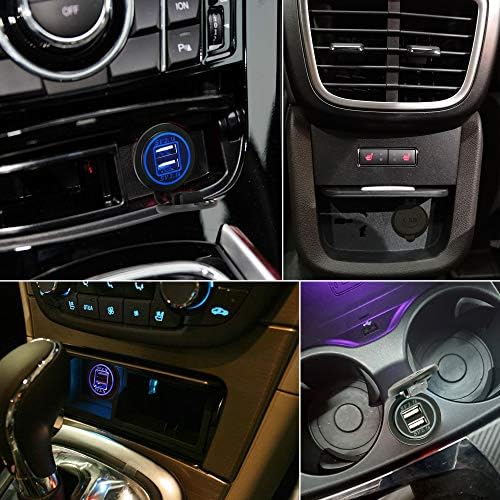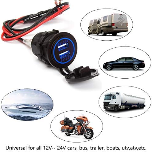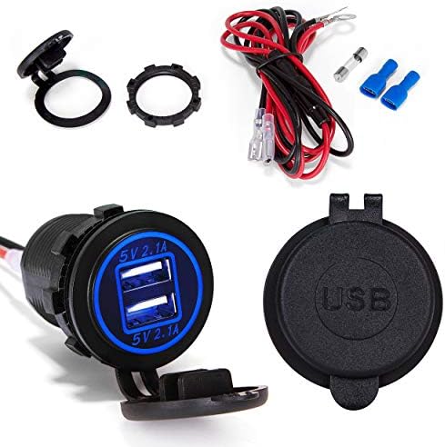 Ginsco Dual USB Charger Socket Power Outlet 2.1A & 2.1A(4.2A) for Car Boat Marine RV Mobile with Wire Fuse DIY Kit Blue LED