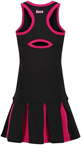 Girl Pink and Black Tennis dress designed by a young trendy Sports Brand Company “Bace”. The dress features a pleated skirt with pink inner lining and printed brand emblem to the chest. The front is stylish with a straight fit and pleated skirt , featuring a trending cut out back design which adds a style look on court or on the golf course. Crafted with a quick dry 100% Polyester fabric. Shipping from the UK – Shipping takes between 7-10 days to the USA