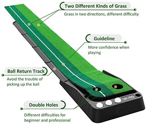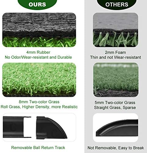 Two Different Resistance Grass: Deep green track designed has lower resistance than light green in order to practice your skill better. Created using rubber backed artificial turf, this putting mat will last for a very long time while allowing players to experience green-like qualities in their own home.