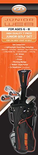 Go junior web boxed sets offer the finest start in golf. Set comprises 16 driver with headcover, 7 iron, 9 iron, pitching Wedge, mallet style putter. Lightweight stand bag with: raincover, 2X pockets, ball pouch, dual comfort strap, 4way divider top, umbrella holder, glove tag.