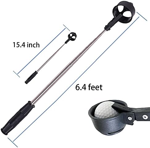 Retractable Length: The ball pickup is extendable to 6.4ft ,helping you retrieve the golf ball from pond, mud, bushes and alligator easily. And it’s retractable to 15.4inch, you can pick balls on lawn without bending down, so it can be stored in your golf bag, easy to carry