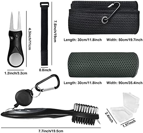【Perfect Golf Club Cleaner Kit】A very good golf cleaning kit for golf lovers, include 2 x Black Golf Towel; 1 x Golf brush with cover; 1 x Golf Divot Tool; 1 x Sport Cooling Towel; 2 x Black belt(for towel storage); If any problem before or after your order, please feel free to let us know, we will try our best to help you solve it.