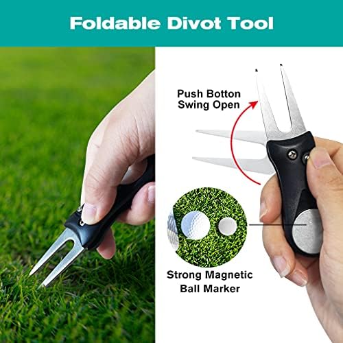 【Golf Divot Tool】It’s made of aluminium alloy, stainless steel and plastic, sharp and super durable, small and lightweight, easy to carry. Simply press the button and the blade will pop out from the cover. You can fold it back if you don’t use it. Safe and convenient. Magnet ball-marker is attached to the divot tool. You can pull it out and use it whenever you want