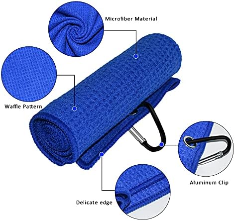 【Golf Towel】 Miccrofiber with waffle design removes dirt, mud, sand and grass better than cotton towels. It has excellent water absorption and fast drying. So you can easier clean the microfiber towel use only water or a little detergent. Aluminum clip/carabineer that conveniently attaches to your golf bag and prevents loose clip and lost towels
