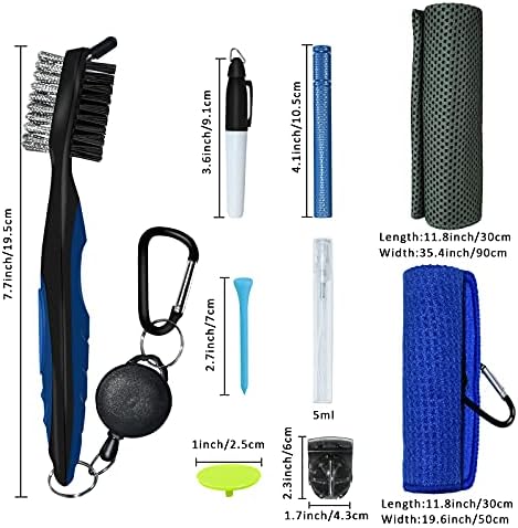 Golf Club Cleaner, Golf Brush and Groove Cleaner, Magnetic Golf Towel with Clip, Sport Cooling Towel, Golf Club Groove Cleaning Brush , 6pcs Golf tees 6 pcs Golf Markers and Golf Line Drawing Device