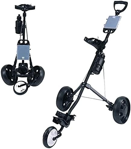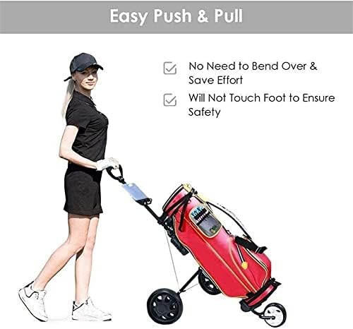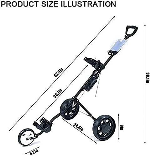 Golf Push Cart Golf Trolley Golf Push Carts Golf Trolley 3 Wheel, Golf Push Cart One Second to Open and Close, Collapsible Golf Caddy, Lightweight Golf Cart with Scorecard Drink Holder