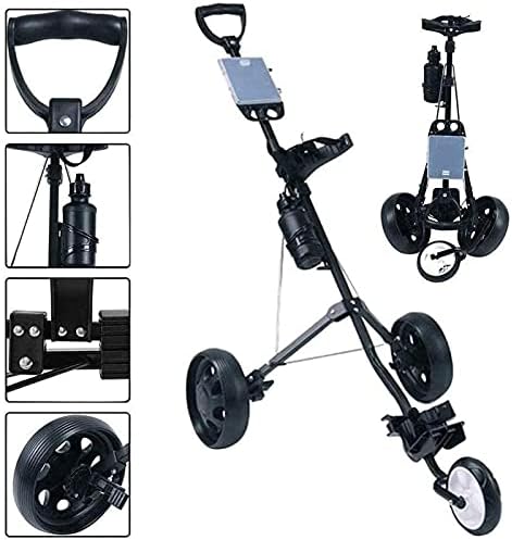 Golf Push Cart Golf Trolley Golf Push Carts Golf Trolley 3 Wheel, Golf Push Cart One Second to Open and Close, Collapsible Golf Caddy, Lightweight Golf Cart with Scorecard Drink Holder