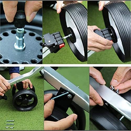 Folding Frame& Lightweight: Golf push cart can be folded easily to compact size. Lightweight but strong enough. You can take off the wheels in seconds to save storage room. The cart can be easy to storage and transport easily.