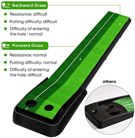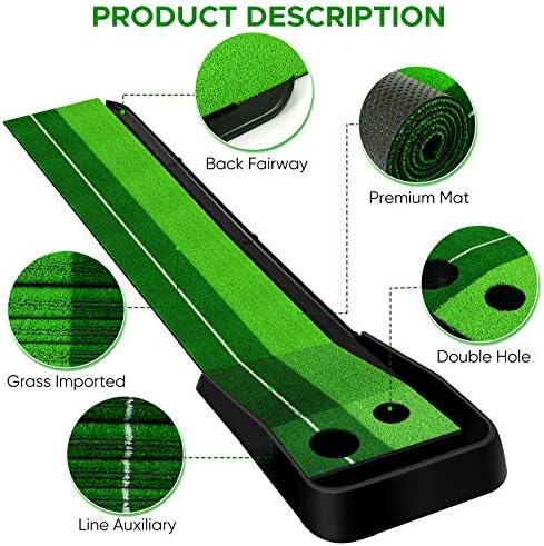 Superior Quality Putting Practice Mat : Made of high-quality rubber base material and A artificial grass. Premium grass will not drop-off, aging or weathering, and the color will not be faded. It is soft enough to reduce frictional damage to the surface of your golf clubs, it will return to the original state immediately after putting training.