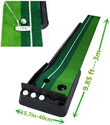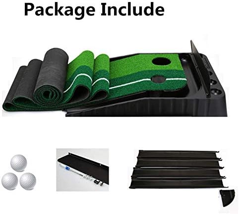 1 Compact Golf Putting Mat : this golf putting set is great gift for all beginners or golf lovers at any level,you can play it at home, office, lawn, park or anywhere you want. about 9.85ft( 3meter )long ,also with 3 hole for put the golf ball , and 1 hole for golf club.