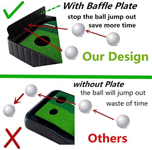 2 Auto Ball Return System with Baffle Plate :the golf putting mat with Auto Ball Return System Baffle Plate ,when the ball into the hole ,it will automatic back to the position , especially the Baffle Plate ,it can block most of the ball back when it crosses the line,it can save you more time when you practice the golf