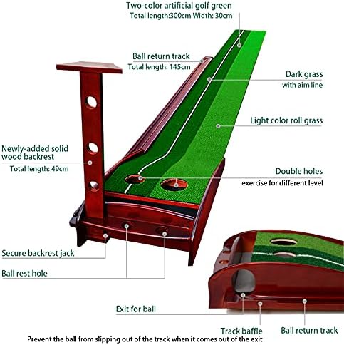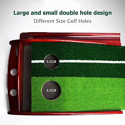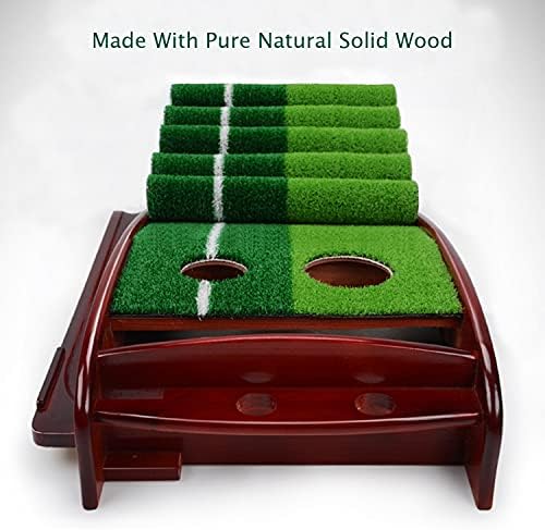 The wooden golf putting mat comes with 3 balls, a portable mat with automatic ball return function.
