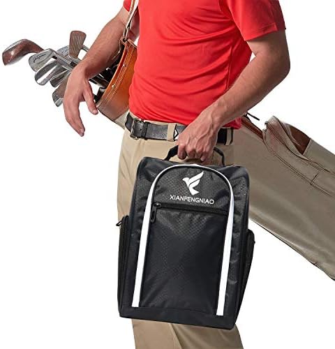 3 External Pockets:This sport shoes bag Comes with an easy-glide zipper for ease of getting your shoes in and out.The front pocket place phones, golf gloves, or personal items.Side pockets on either side can be used to store accessories, such as golf balls, tees, socks, keys, etc.