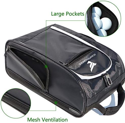 Golf Shoe Bag, Outdoor Zippered Carrier Bags with Ventilation for Women and Men, Sport Shoes Bag with External Pockets for golf accessories(Black)