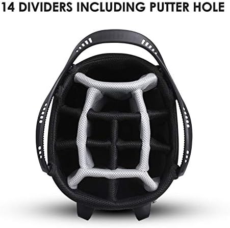 【14 Way Top with Lift Assist Handle】14 Individual well for every club, keep things well-organized from scratch against each other, supperior to many bags with [14 dividers and only 5 wells]. The integrated handle to the top cuff allow for easy access and maneuverability.