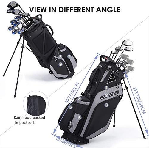 Golf Stand Bag 14 Way Top Dividers Ergonomic with Stand 8 Pockets, Dual Strap, Rain Hood
