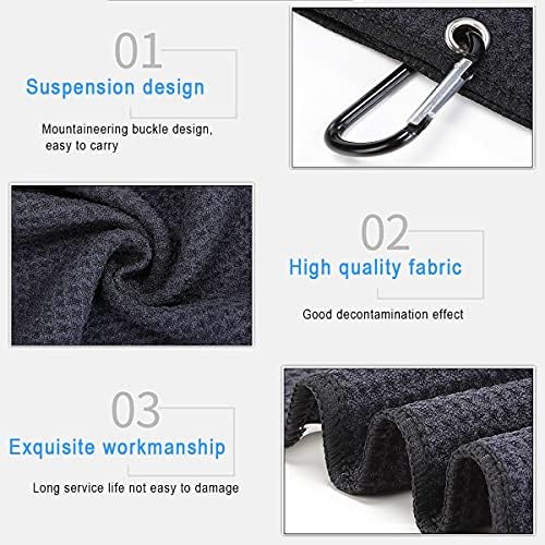 【High Quality Golf Towel】Made of soft Microfiber with waffle design, the golf towel removes dirt, mud, sand and grass better than any other cotton towels. It has excellent water absorption and fast drying. Durable clip/carabineer that attaches to your golf bag for conveniently use.