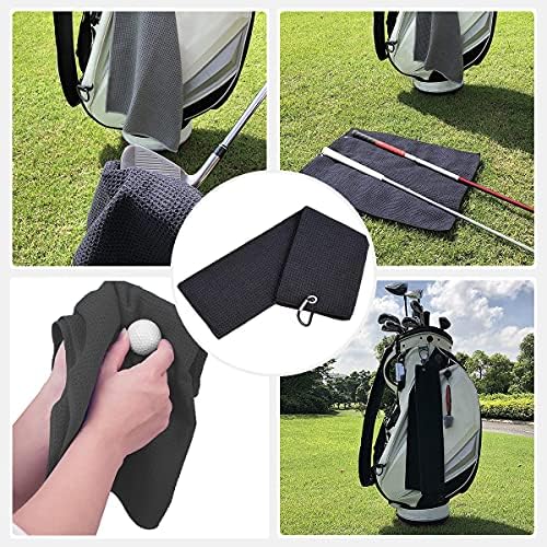 Golf Towel Golf Club Brush Set, Microfiber Waffle Towels for Golf Bags with Clip, Golf Club Groove Cleaner Tool with Retractable Carabiner, 2 Pack Gifts Golf Accessories Set for Men (Black)