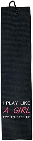Golf Towel Store – Fun Golf Accessories for Womens Golf, Embroidered Golf Towels for Golf Bags with Clip – 100% Cotton or Waffle Microfiber Options – I Play Like A Girl Try to Keep Up