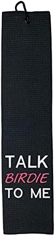 Golf Towel Store – Fun Golf Accessories for Womens Golf, Embroidered Golf Towels for Golf Bags with Clip – 100% Cotton or Waffle Microfiber Options – Talk Birdie to Me