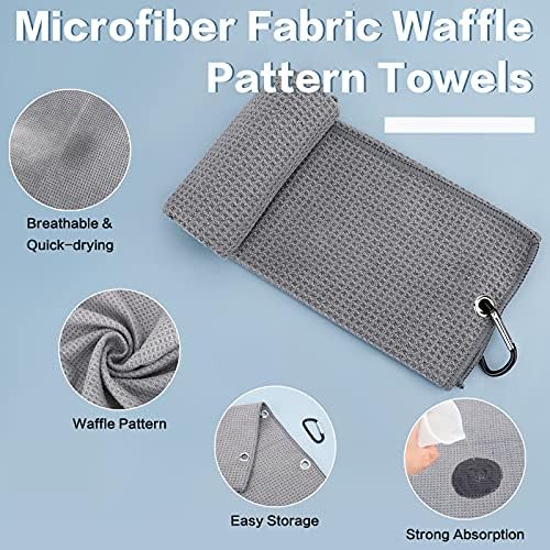 PROFESSIONAL GOLF TOWEL – 15.7″ X 23.6″ Tri-fold microfiber golf towel with waffle design removes dirt, mud, sand and grass better than cotton towels. Microfiber towels has strong water absorption and quick-drying characteristics, is easy to clean, can be easily cleaned with water or a small amount of detergent. Carabiner clip that conveniently attaches to your golf bag and prevents towels losing.