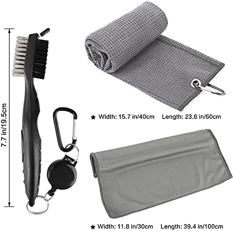 Golf Towels, Rescoto Golf Towel Golf Club Brush Sport Cooling Towel Set Microfiber Waffle Pattern Tri-fold Towel Club Groove Cleaner Brush with Clip Golf Gifts for Men Women