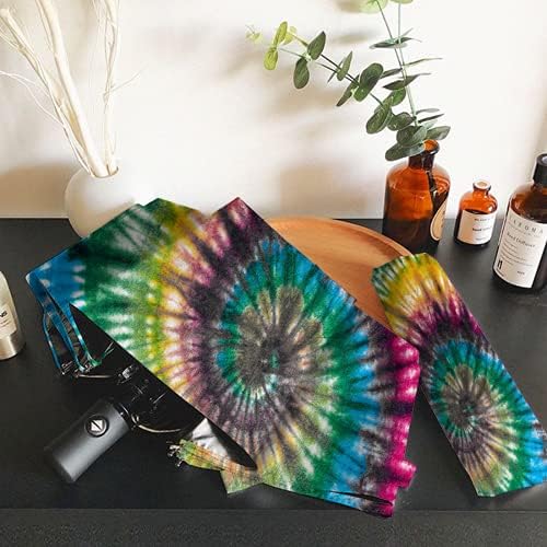 Golf Umbrella Yellow Blue Pink Tie Dye Beautiful Cute Compact Auto Open Close Travel Sun Uv Windproof Folding Umbrella Portable Retractable Car Umbrellas Automatic Parasol With Black Anti-Uv Coating