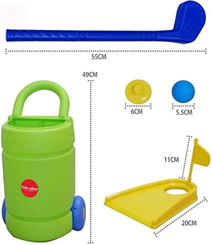 The right length – the length of a proper golf club of 55cm to match the height of children A golf cart with wheels that children can drag