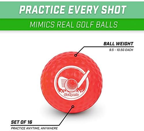 FOAM GOLF BALLS: Set of 16 sturdy foam golf balls so you can safely practice at home, indoors or outdoors