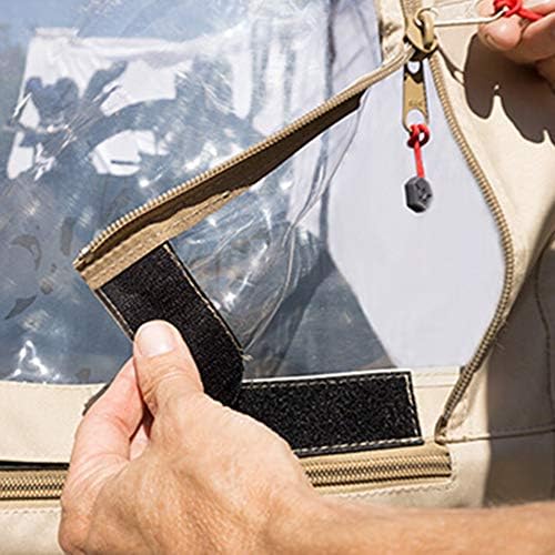 Super clear double polished vinyl windows – 4 sided enclosure easily fits over roof – Roll up doors on each side – XT Super duty double zippers with glove pulls – Lock down “J” hooks – Clear Rear Panel Allows for Tailight Visibility