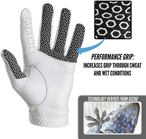 BETTER FEEL: With soft feel and full control, your improved golf glove grip will improve your confidence. The best golf glove for rain, humidity, hot temperatures, and more. When your confident, it reflects in your performance. Set yourself up for success with the expertly crafted Grip Boost Hyper Touch Golf Glove made of cabretta leather and thoughtfully engineered grip to increase maximum comfort, and performance.