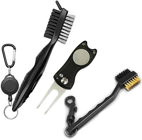 Gzingen Golf Accessories Set, Metal Golf Divot Repair Tool with Ball Marker, Club Groove Cleaner Cleaning Brush with Retractable Extension Cord, and Golf Brush Groove Cleaner (3 in 1 Pack)