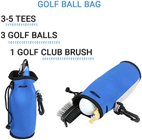 Soft Golf Bag】Hold about 2-3 golf balls & 3-5 golf tees & a golf brush & a groove sharpener for daily golf training.Benefit for storing golf brush and groove sharpener away from hurting. Strong clip can be attached to golf club bag or belt.Practical and portable. Suitable for daily training and competition, as well as a golf gift for golf lovers.