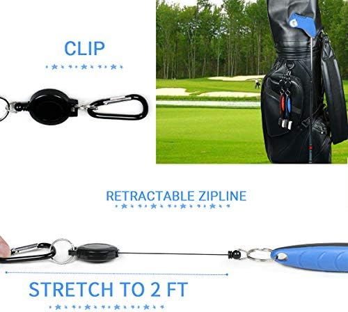 HAIYUE Retractable Golf Club Brush Wire Nylon Bristles Groove Cleaner 2 Ft Zip-line Aluminum Carabiner Easily Attaches to Golf Bag + Ball Holder Clip Utility Pouch + Groove Sharpener Gift Bundle Combo
