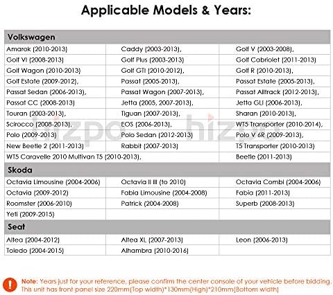 Polo(2009-2013)Polo Sedan (2012-2013)Polo V6R(2009-2013)New Beetle 2(2011-2013)Rabbit(2007-2013)T5 Transporter (2010-2013)WT5 Caravelle 2010 Multivan T5(2010-2013)Beetle(2011-2013) Skoda:Octavia Limousine ( 2004-2006)Octavia II III (to 2010)Octavia Combi(2004-2006)Octavia(2009-2012)Fabia Limousine (2004-2008)Fabia(2011-2013) Roomster(2006-2010)Patrick(2004-2008)Superb(2008-2013)Yeti(2009-2015) Seat:Altea(2004-2012)Altea XL(2007-2013)Leon(2006-2013)Toledo(2004-2015)Alhambr(2010-2016)
