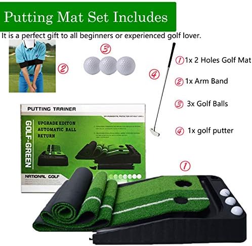 ⛳【Simple use and storage golf putting mat set】The easy to assemble putting mat Set comes with One standard golf putter ,Posture Motion Correction Belt and 3 premium quality balls .so that you don’t need to buy extra accessories, gadgets, or equipment.its easy to assemble design means that you can start to play in an instant!