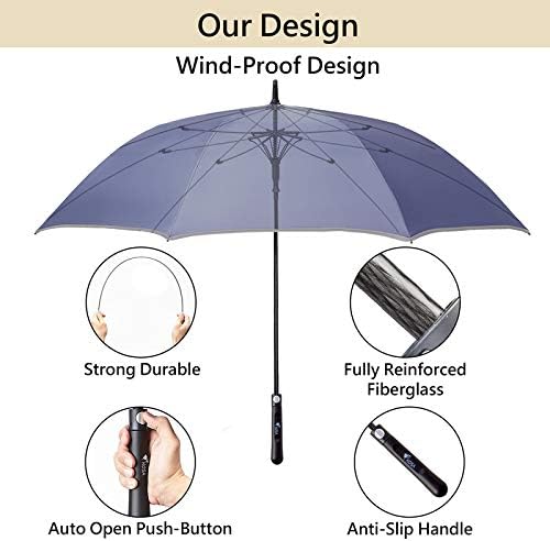 ☂️ WINDPROOF & AUTO OPEN – Heavy Duty Made to Withstand Strong Winds & Heavy Rains with 8 Reinforced Fiberglass Ribs Design – Strong Durability that Prevents Overturning. Auto Open Push Design that Opens Effortlessly with just a Button. Other Umbrellas flip in the wind & break immediately, but not the Durable HOSA Golf Umbrella! This umbrella allows the wind to pass through, minimizing the risk of flipping over & breaking in strong winds!