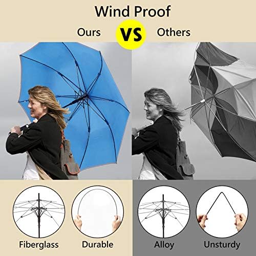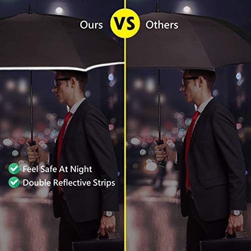 ☂️ ANTI-SLIP HANDLE DESIGN – COMFORTABLE & CONVENIENT – It is an Ergonomic Handheld handle with detailed craftmanship. When holding the handle your hands will intuitively grab hold of it. When met with strong gusts of wind, your umbrella will not slip away. Staying Strong, Opens effortlessly in the rain, and staying dry. Withstand the winds without the umbrella flipping. *Please note that this golf umbrella is collapsible and is foldable closed by manual locking.