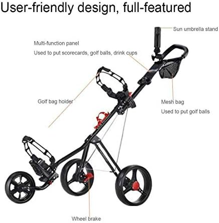 [ALUMINIUM ALLOY MATERIAL, LIGHT WEIGHT AND SOLID STRUCTURE]-The body weight is 12lbs, you can easily push on the golf course, save your energy and improve your play experience.
