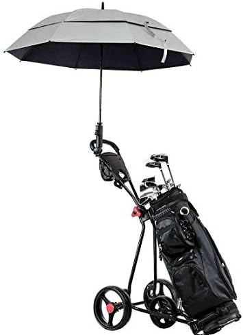 Equipped with ergonomic handle for comfort, the golf cart handle is an adjustable handle that can be adjusted to different heights. Built in umbrella holder: You won’t get stuck on the course in a downpour ill-equipped again.