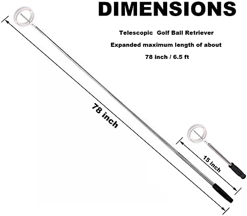 HOW TRUE Telescopic Golf Ball Retriever for Water, Stainless Extendable Golf Ball Retriever with Dual Zip Headcover
