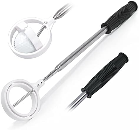 This telescopic golf ball retriever helps you pick up a golf ball in ponds, ditches, mud pools or anywhere else easily without bending down.