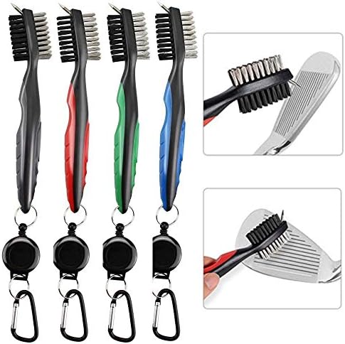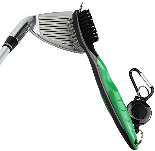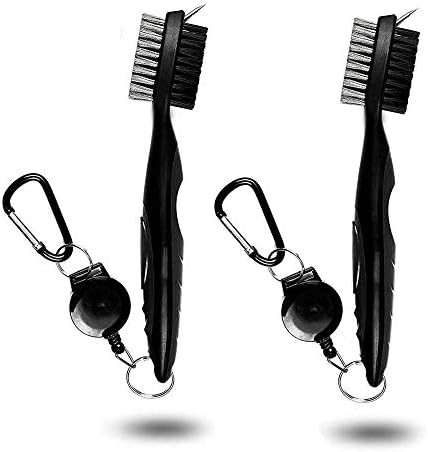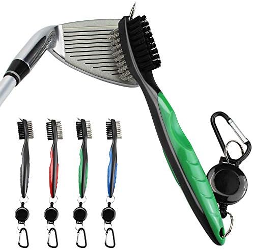 HUOFU Golf Club Brush Groove Cleaner with Retractable Zip-line and Carabiner, Golf Cleaning Tool Spike Groove Cleaner with Nylon and Metal Bristles