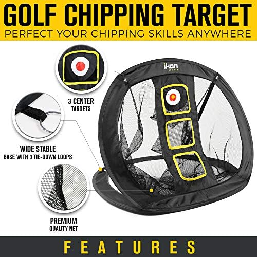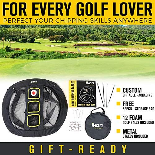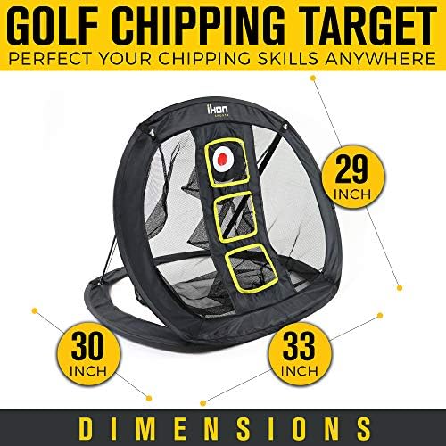 Ikon Sports Golf Chipping Target – Foldable Pop Up Net with 12 Foam Golf Balls and 3 Metal Stakes – Improve Your Golf Chipping Game Short Shots at Home – Golf Chipping Nets for Backyard