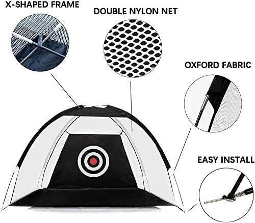 Premium-Quality Materials for Durability: Feel free to use real golf balls and clubs because the reinforced netting can absorb the impact of the balls. The fiberglass frame secure the net and enable it to stand firmly on the ground.