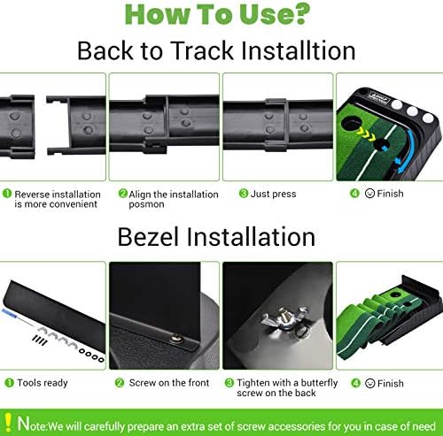 ⛳【Quick Assembly】- Simple set up by aligning all the plastic pieces, snapping the plastic pieces into place, and gently pressing together to secure. Golf putting green unfolds evenly against any flat surface with no creases for precise putting. You can practice golf at home, office, lawn, backyard, park or anywhere else with our putting green.