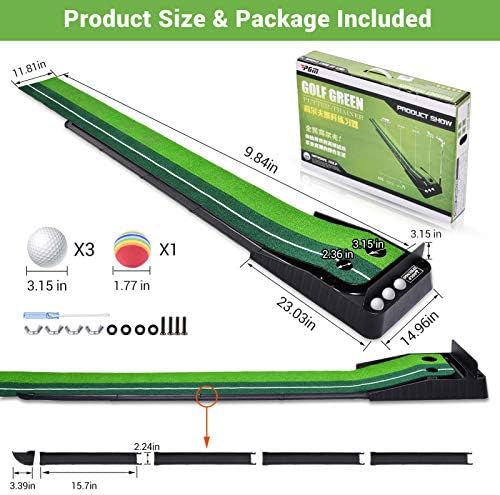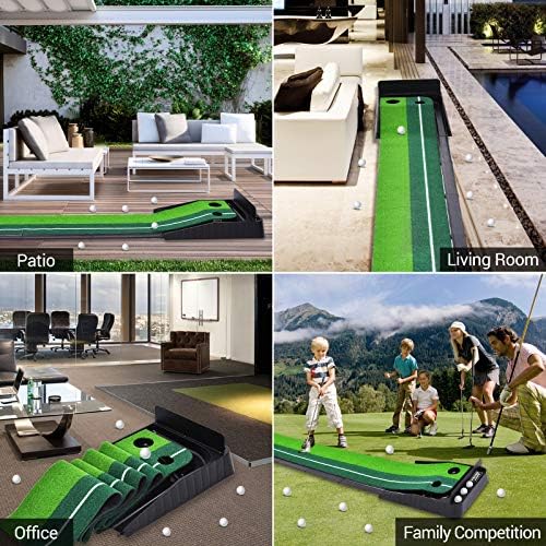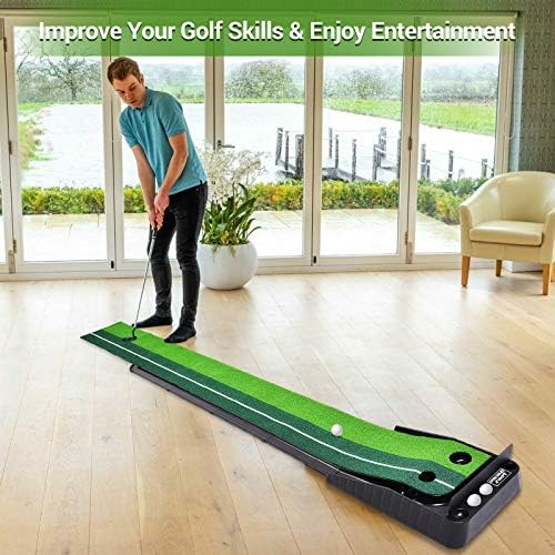IPHUNGO Indoor Golf Putting Green – Extra Long 9.84Ft Mat with Auto Ball Return Function 2 Holes and 3 Golf Balls 1 Sponge Ball Mini Golf Practice Training Aid, Office,Game,Home, Office, Outdoor Use