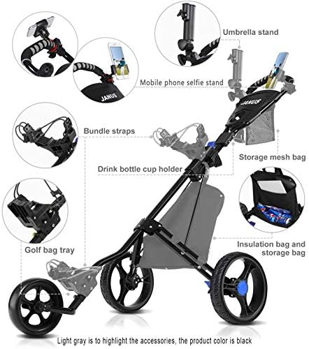 JANUS Golf Push Cart, Golf cart for Golf Clubs, Golf Pull cart for Golf Bag, Golf Push carts 3 Wheel Folding, Golf Accessories for Men Women/Kids Practice and Game